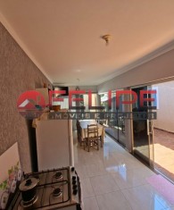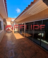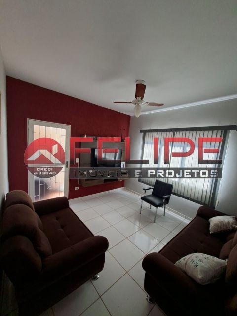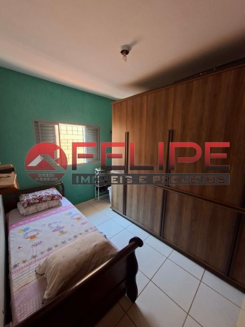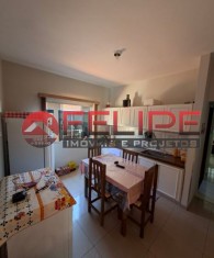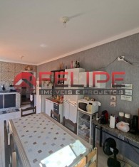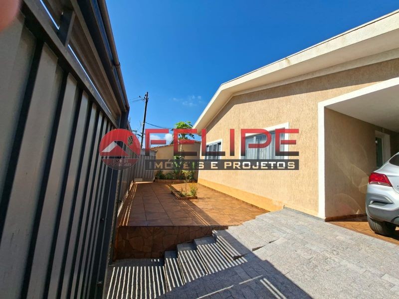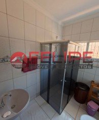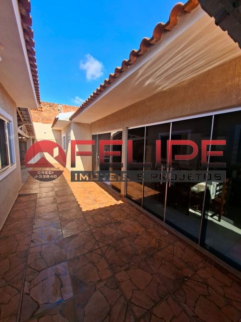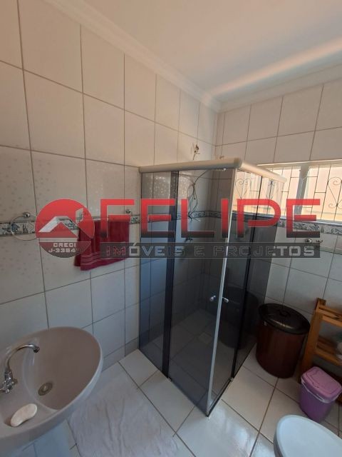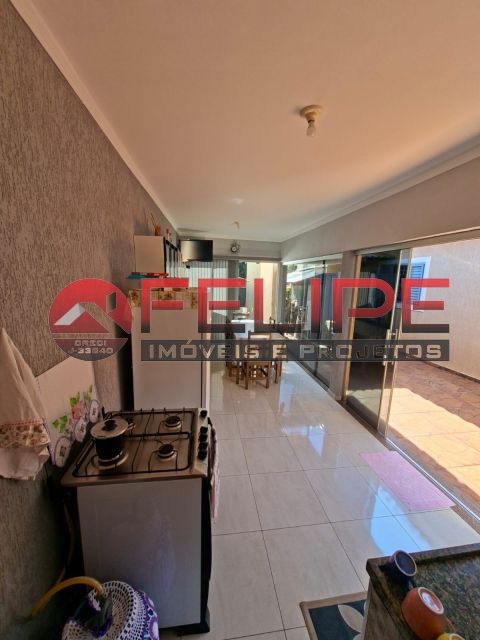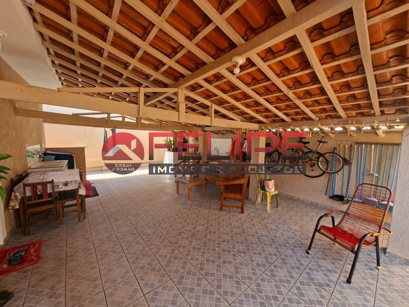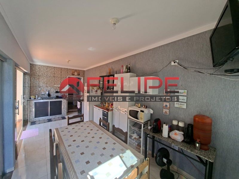 3 quartos (sendo 1 suíte), cozinha, banheiro social, lavanderia coberta, área de lazer com pia e churrasqueira, nos fundos 1 quarto, banheiro e cozinha e garagem 2 carros.