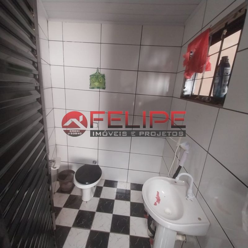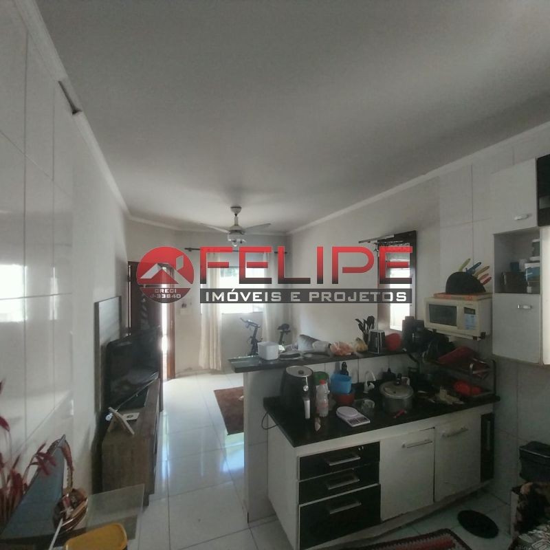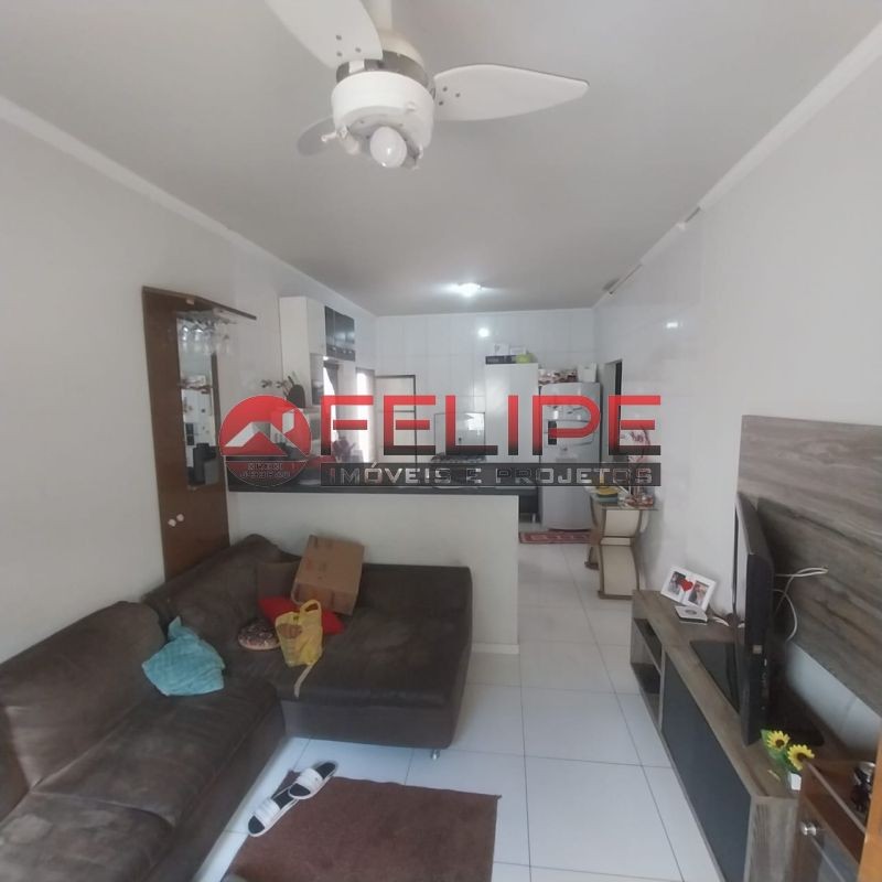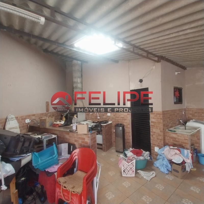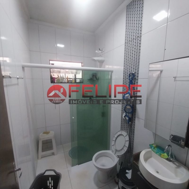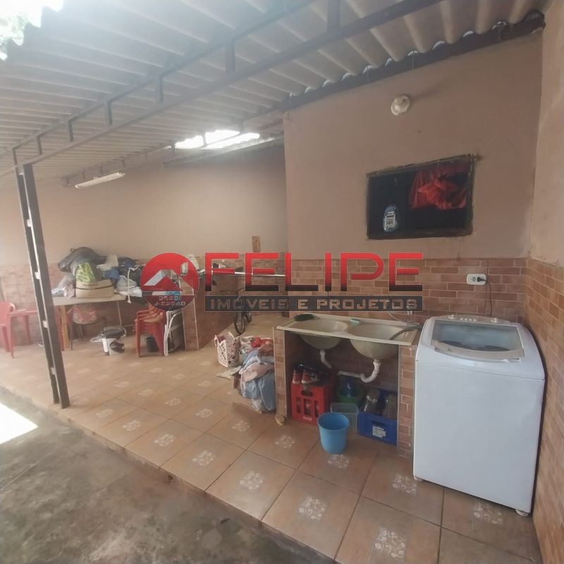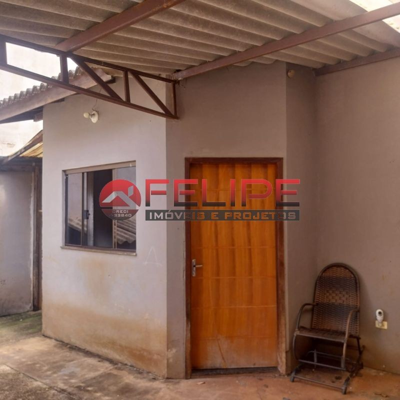 2 quartos, sala, cozinha, banheiro, àrea de lazer com churrasqueira, balcão, banheiro, quintal amplo e garagem.