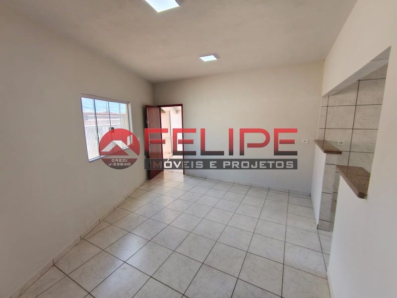 02 quartos, escritório, banheiro, sala ampla conjugada com cozinha, garagem coberta com portão eletrônico, com 02 entradas, área de serviço nos fundos coberta com pia, banheiro e despensa.