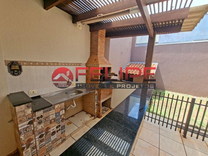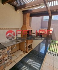 3 quartos sendo suíte , banheira, armarios planejado, copa, cozinha planejada, sala, nos fundos área de lazer balcão, pia, churrasqueira, banheiro, canil, quintal amplo, garagem com portão eletrônico.