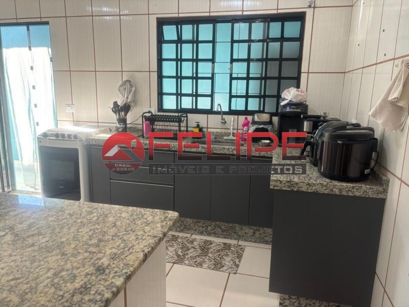 3 quartos sendo uma suíte, sala, cozinha planejada, banheiro social nos fundos lavanderia coberta, área de lazer com churrasqueira, pia, garagem 2 carros coberta.