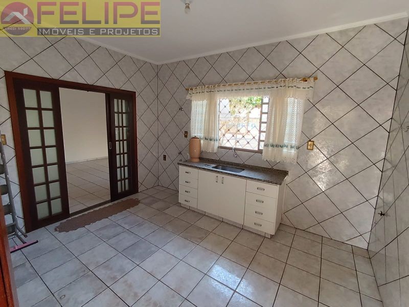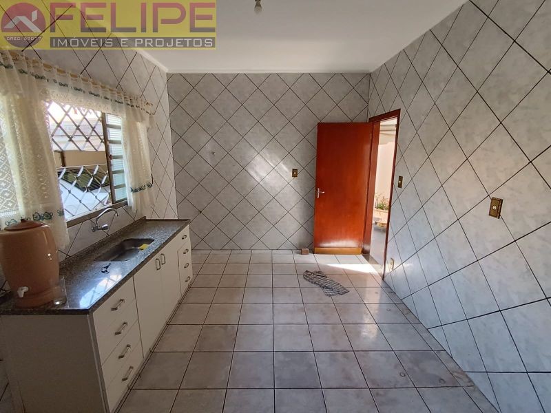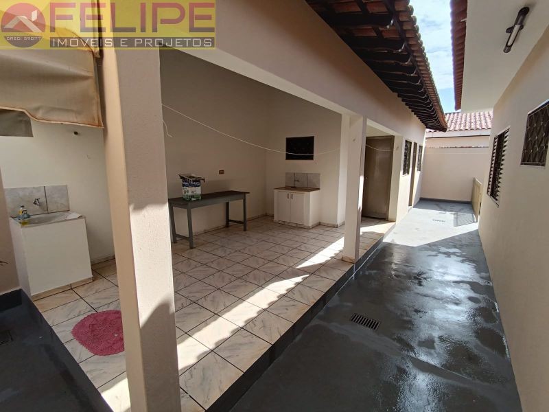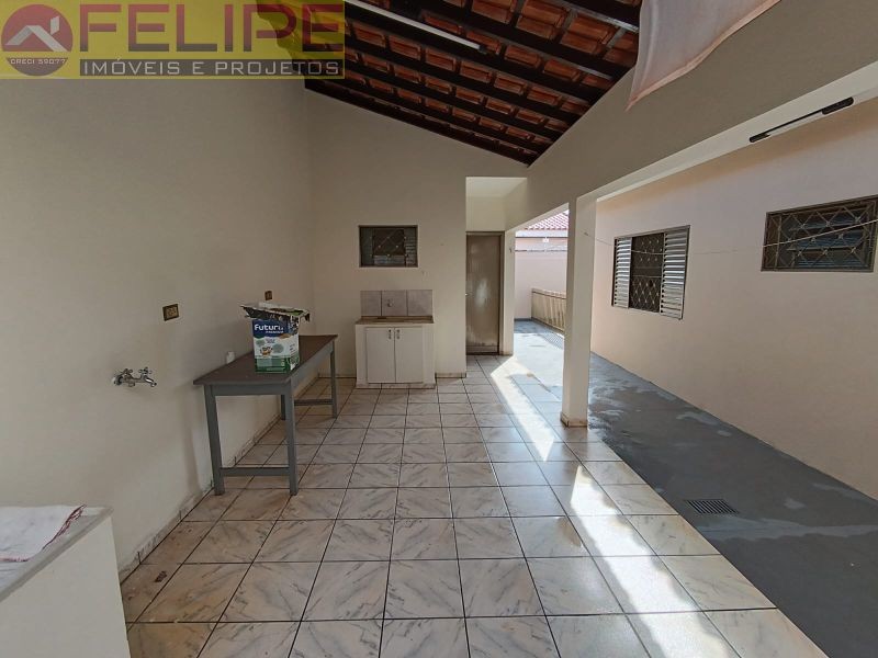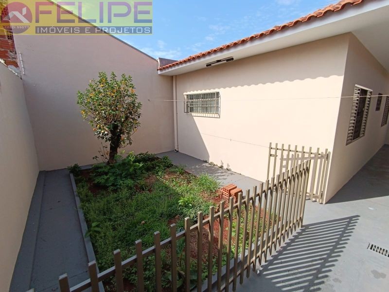 2 quartos amplos, sala, cozinha, banheiro social, área ampla nos fundos com lavanderia, banheiro, 2 despesas e 2 vagas na garagem.