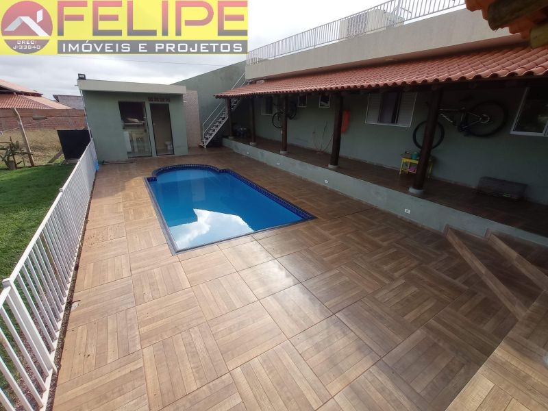 Casa Construída nos fundos, toda de laje e piso, c/ ampla sacada em cima c/ linda vista, c/ 02 quartos (sendo 01 suíte c/ armário planejado), Sala, Copa, Cozinha toda planejada e Área Gourmet c/ balão e churrasqueira Integrada c/ a casa, toda fechada de vidro blindex, Piscina de Alvenaria c/ Pastilha de aproximdamente 25.000 litros, lavanderia e banheiro externo, área de construção aproximadamente 150 m2 !!!