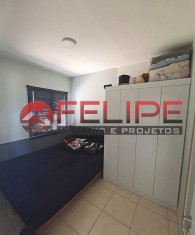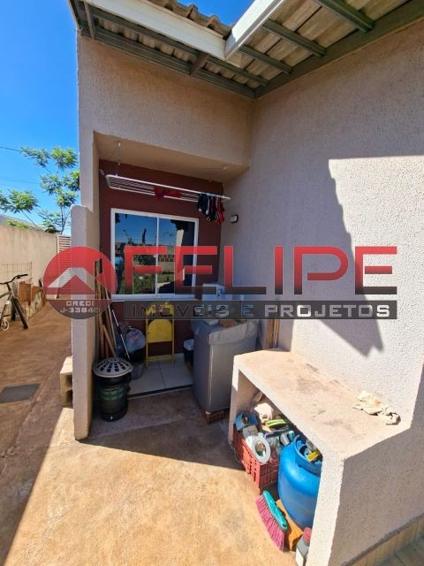 2 quartos, sala e cozinha planejada, banheiro com armário e garagem.