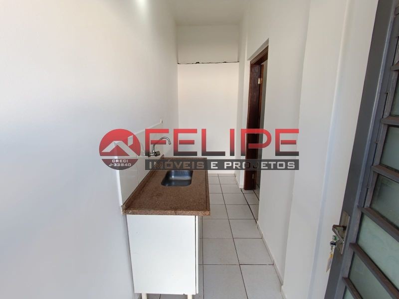 1 quarto, uma cozinha pequena, banheiro e vaga para carro descoberta.